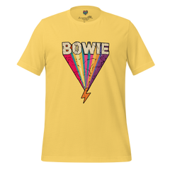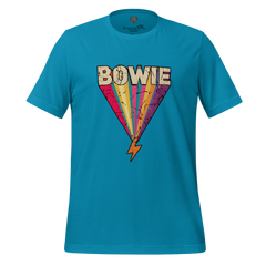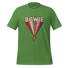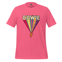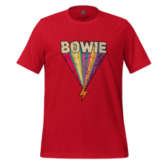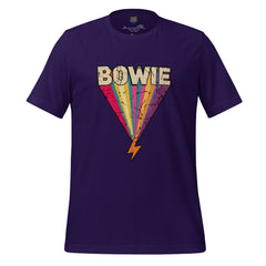 A glam rock tribute shirt featuring a lightning bolt inspired by 70s era iconography. Bold, retro, and music-legend driven.