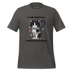 This holiday cat shirt continues the annual showdown between determined feline and decorated evergreen, acknowledging the inevitable rematch every December. The phrase lands instantly for anyone whose tree has already fallen once.