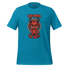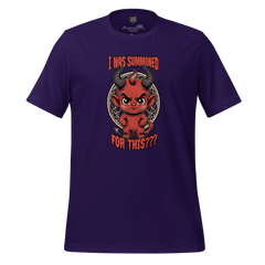 This occult humor shirt plays with ritual language and supernatural bureaucracy, turning summoning lore into deadpan declaration. The phrase lands absurd and mystical at once — cosmic forces treated like paperwork.