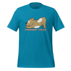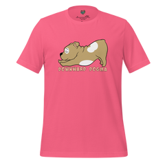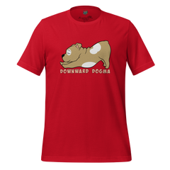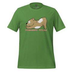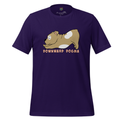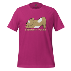 A clever yoga pun shirt featuring the phrase “Downward Dogma.” Playful, witty, and studio-culture smart.