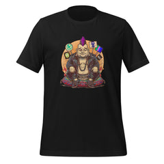 Buddha-inspired graphic tee celebrating presence and quiet strength. Unisex cotton shirt for peace, protest, and mindful everyday wear.