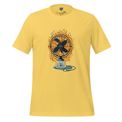 When the fan is on full blast and you’re still sweating out your will to live—this shirt gets it. Featuring a crisp, wordless design of a classic desk fan engulfed in flames, it’s a wearable tribute to heatwaves, climate despair, and the futility of cheap cooling solutions.