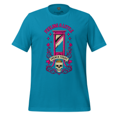 A darkly funny “Feeling French Today” shirt referencing French Revolution beheading satire. Historical, rebellious, and sharply ironic.