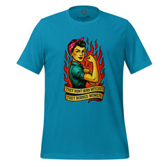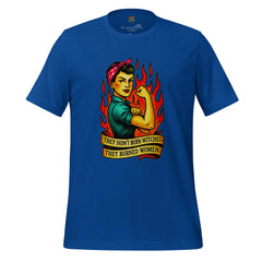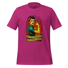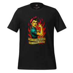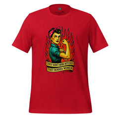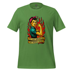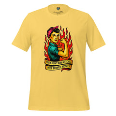 A powerful feminist statement shirt featuring Rosie-style fire art and the phrase “They Didn’t Burn Witches.” Bold, defiant, and historically charged.