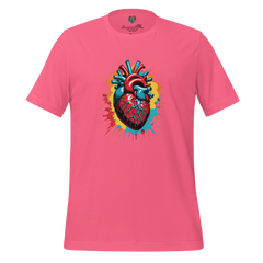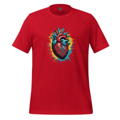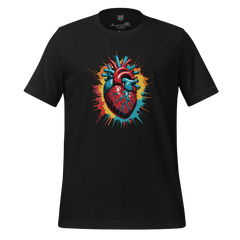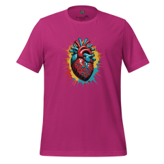 This gothic anatomical shirt pairs literal heart imagery with emotional weight, framing pain as something enduring rather than broken. The word lands stark and intimate — vulnerability rendered as anatomy.
