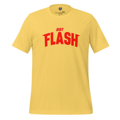 Hot Flash. A bold menopause humor shirt with vintage-style graphic attitude — midlife heat, zero apologies, and fully owned energy.Hot flash incoming.