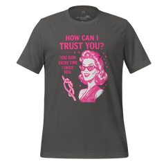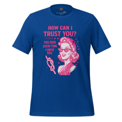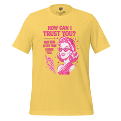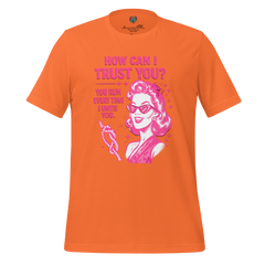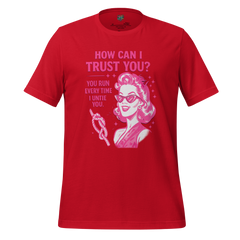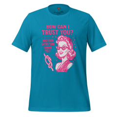 A retro humor shirt featuring the line “How Can I Trust You.” Playful, ironic, and relationship-comedy inspired.