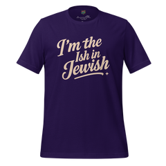 A witty Jewish humor shirt playing on the phrase “I’m the ish in Jewish.” Clever, lighthearted, and culturally playful.