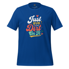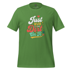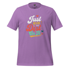 A Gen X humor shirt featuring “Just Rub Some Dirt on It.” Tough-love, nostalgic, and childhood wisdom themed.