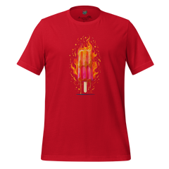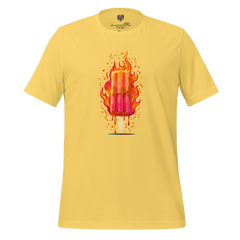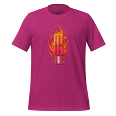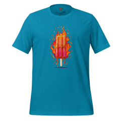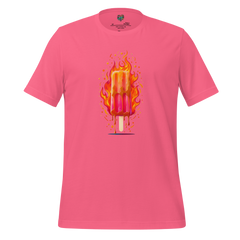 Illustrated flaming popsicle dripping into oblivion—summer’s innocence gone rogue, no text required. Printed with high-quality DTG inks for maximum color pop and meltdown energy.