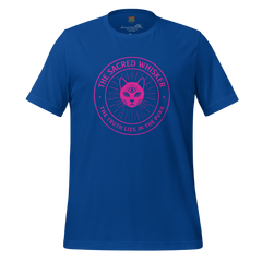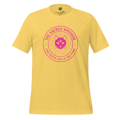This dark humor cat shirt twists religious language into feline devotion, presenting the cat as divine figure in a tongue-in-cheek cult aesthetic. The phrase Sacred Whisker reads like ancient liturgy — equal parts parody and affectionate exaggeration of cat worship culture.