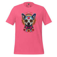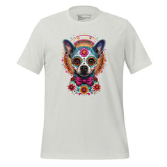 This Day of the Dead pet memorial shirt uses traditional sugar skull symbolism to honor the enduring bond between people and their animal companions. The calavera style reflects remembrance through celebration — memory carried with color, pattern, and presence.