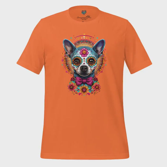 A meaningful sugar skull pet memorial shirt inspired by Día de los Muertos remembrance. Decorative, heartfelt, and honoring beloved companions.