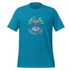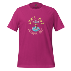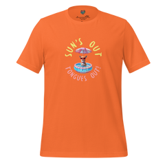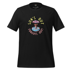 The “Sun’s Out, Tongues Out” shirt features a bold, oversized graphic celebrating sunny days, happy pups, and full-on summer vibes.
