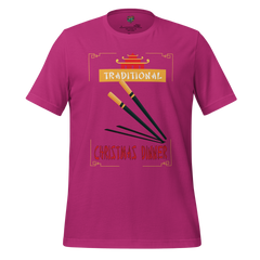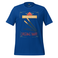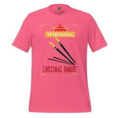 A cheeky holiday shirt referencing “Traditional Christmas Dinner.” Festive, irreverent, and seasonally mischievous.