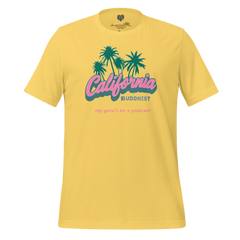 This California Buddhist shirt is made for the spiritual-but-slightly-ironic crowd. The ones who meditate to lo-fi beats, quote TikTok monks, and know that good vibes are best when streamed at 1.25x speed. Soft, retro-bright, and unmistakably West Coast, this tee is a whole mood — a very Californian, self-aware, turmeric-latte kind of mood.
