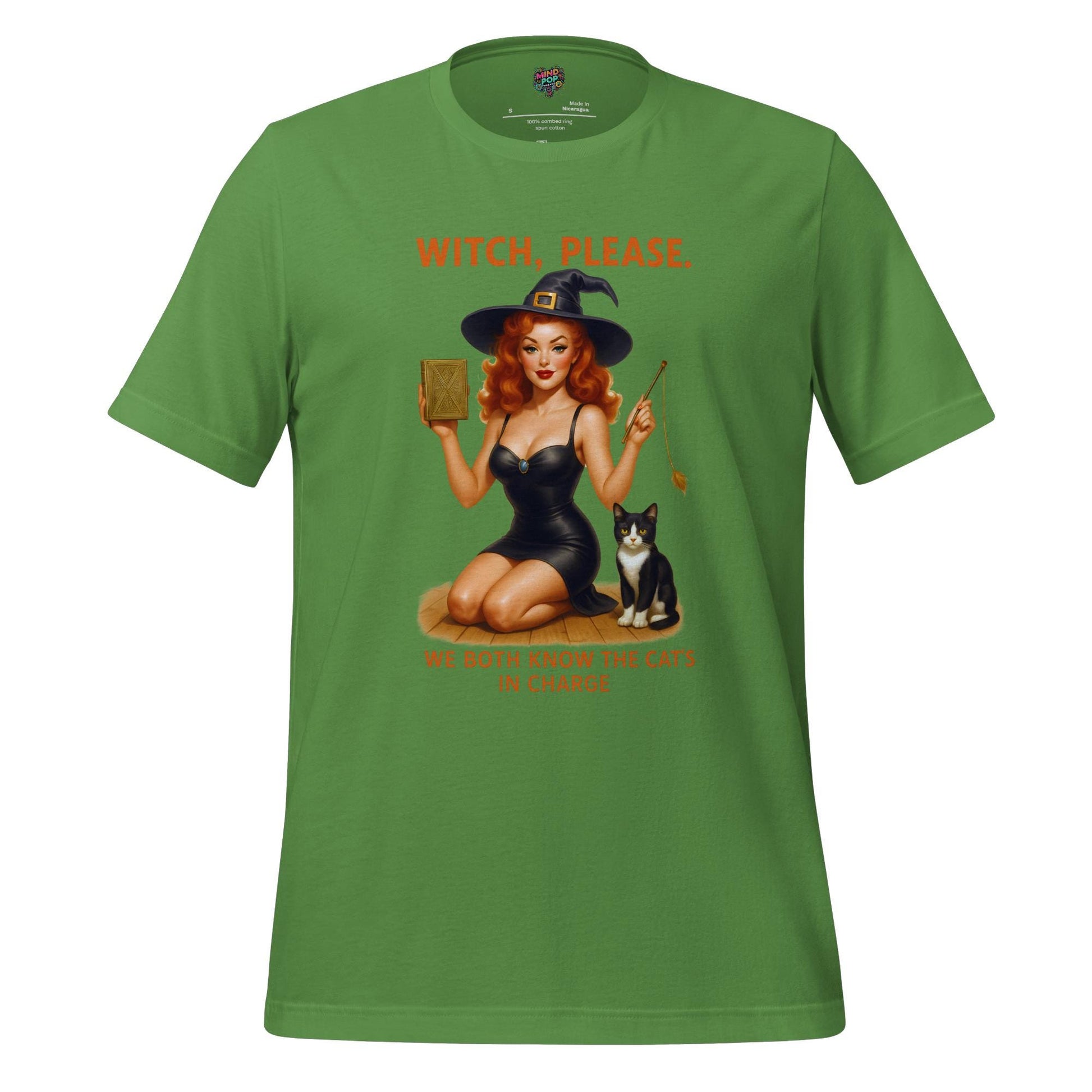 Witchcraft 101: the cat runs the coven, you just scoop the litter. This “Witch, Please” shirt isn’t here to charm—it’s here to remind you who’s really in charge. Spoiler: it’s got fur, claws, and the ability to ignore you in any dimension.