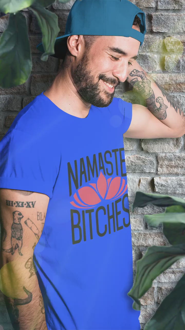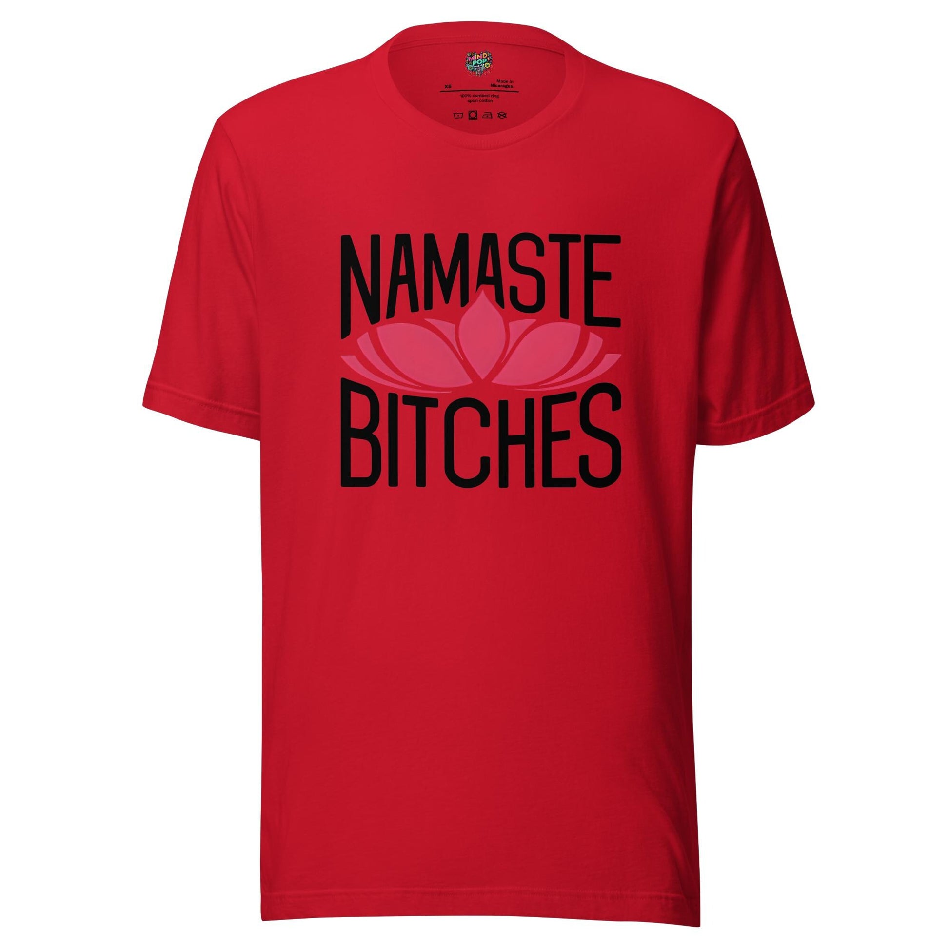 “Namaste Bitches” lotus tee brings equal parts zen and sass. Soft cotton unisex shirt with a bold graphic for yoga, meditation, or sarcastic enlightenment.