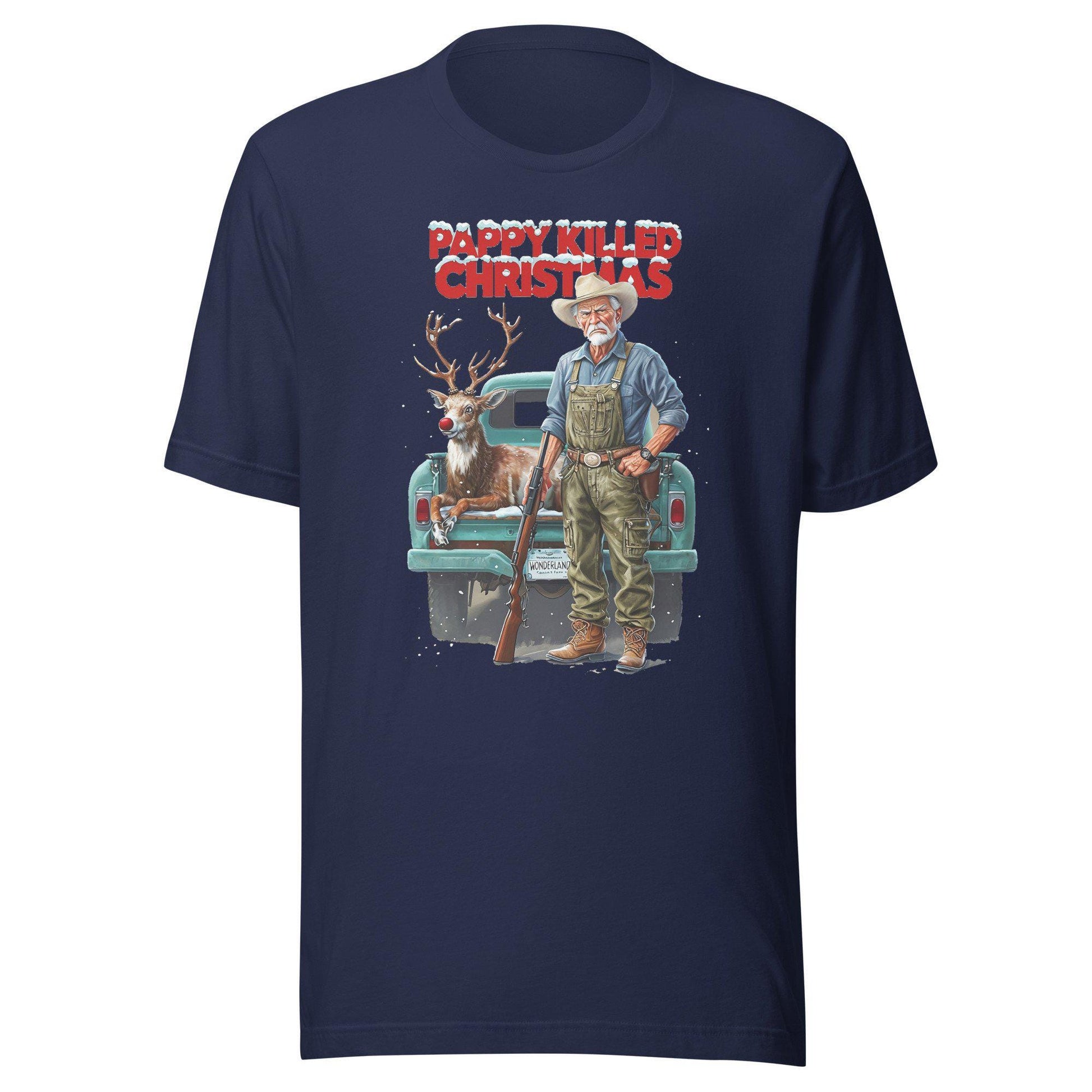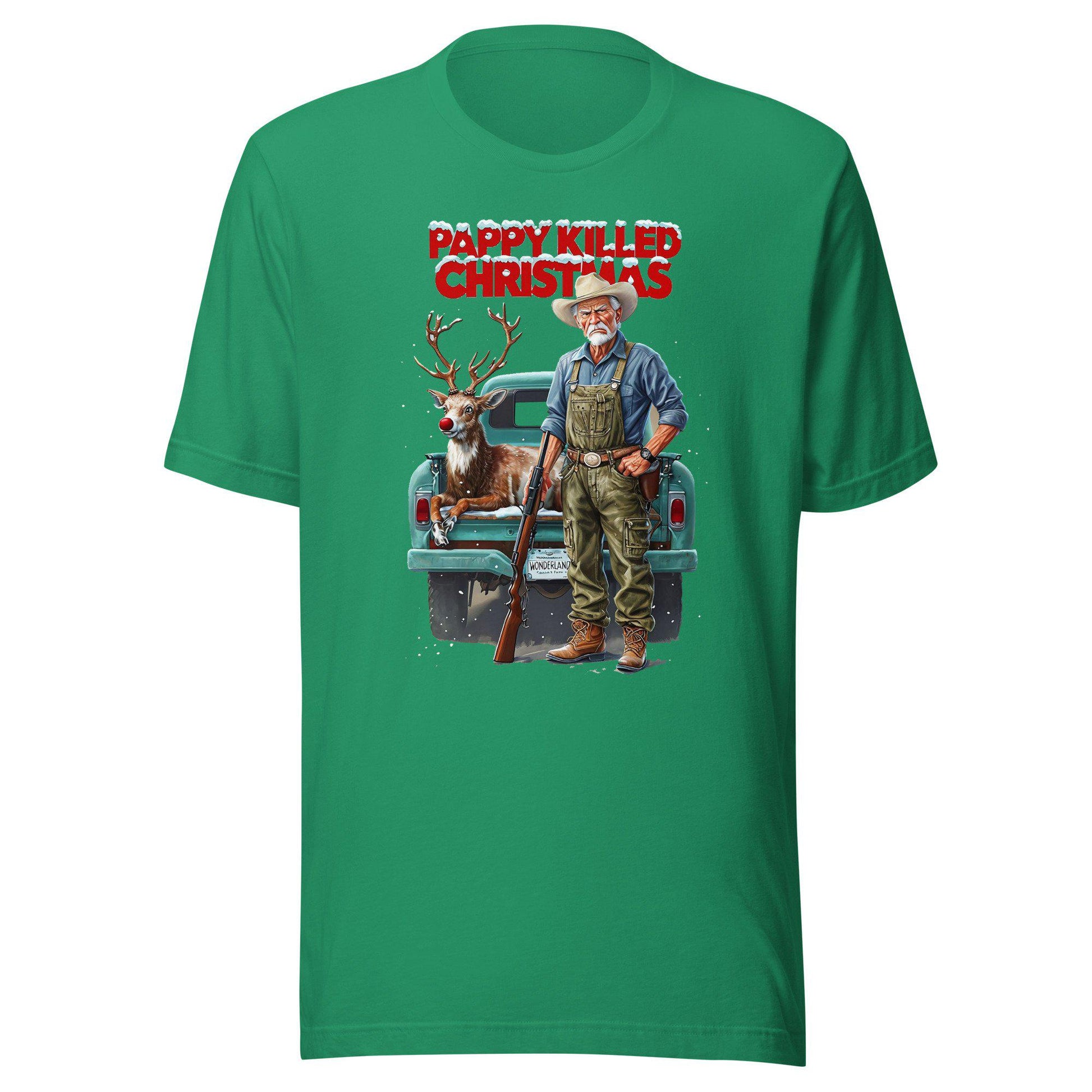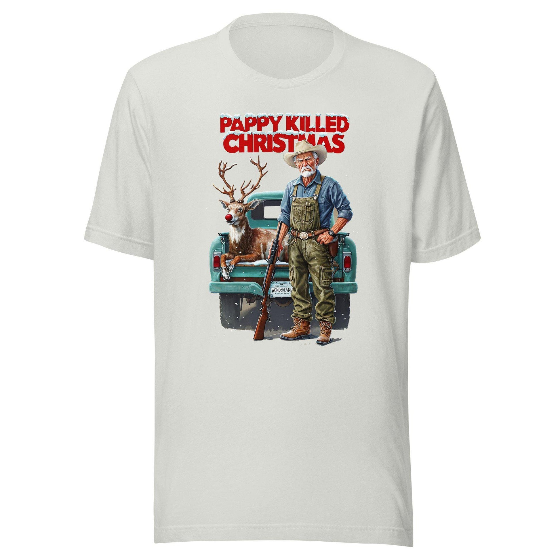 Dark humor Christmas shirt featuring grandpa and Rudolph. Funny holiday tee for chaotic families, anti-Christmas moods, and twisted festive vibes. Unisex fit, soft cotton.