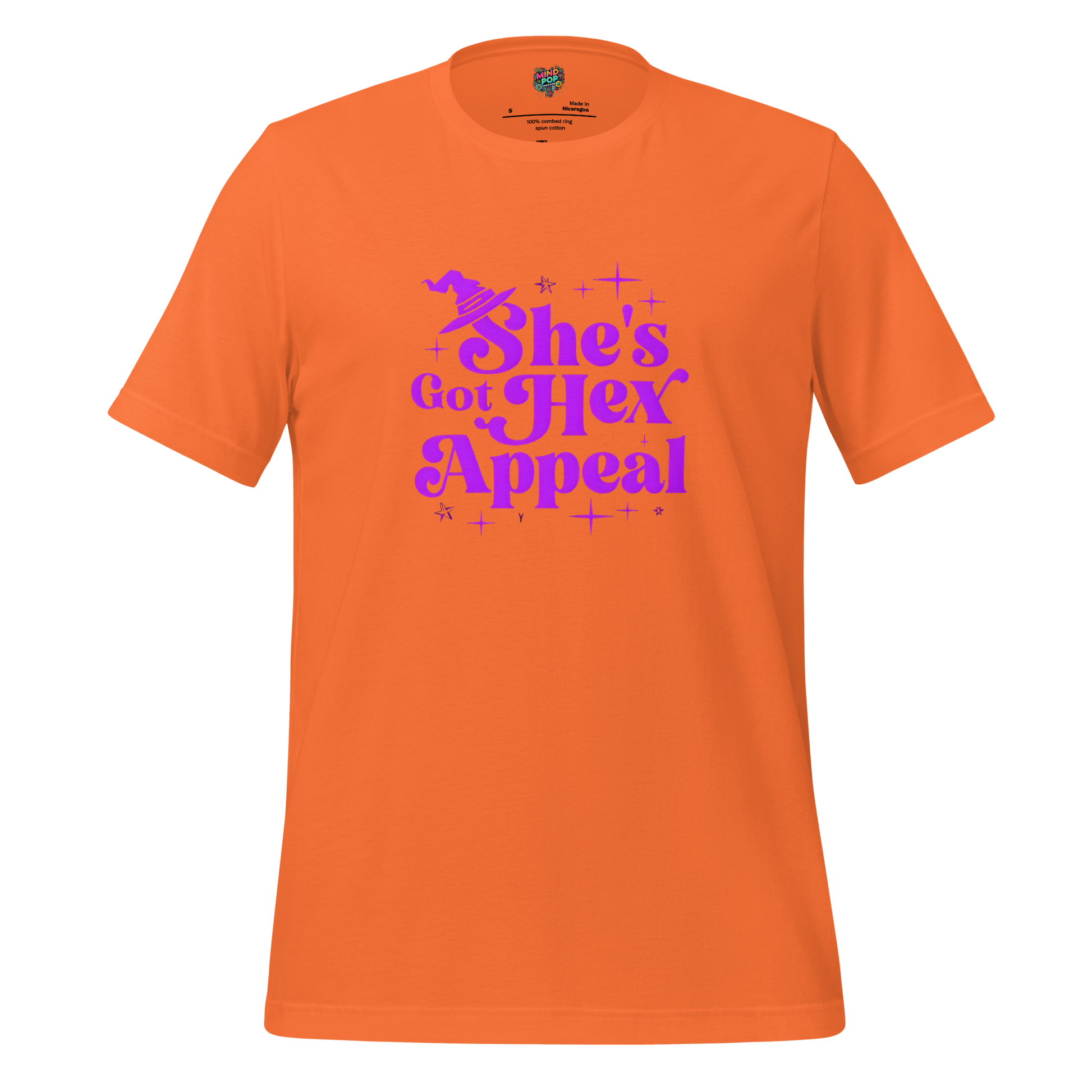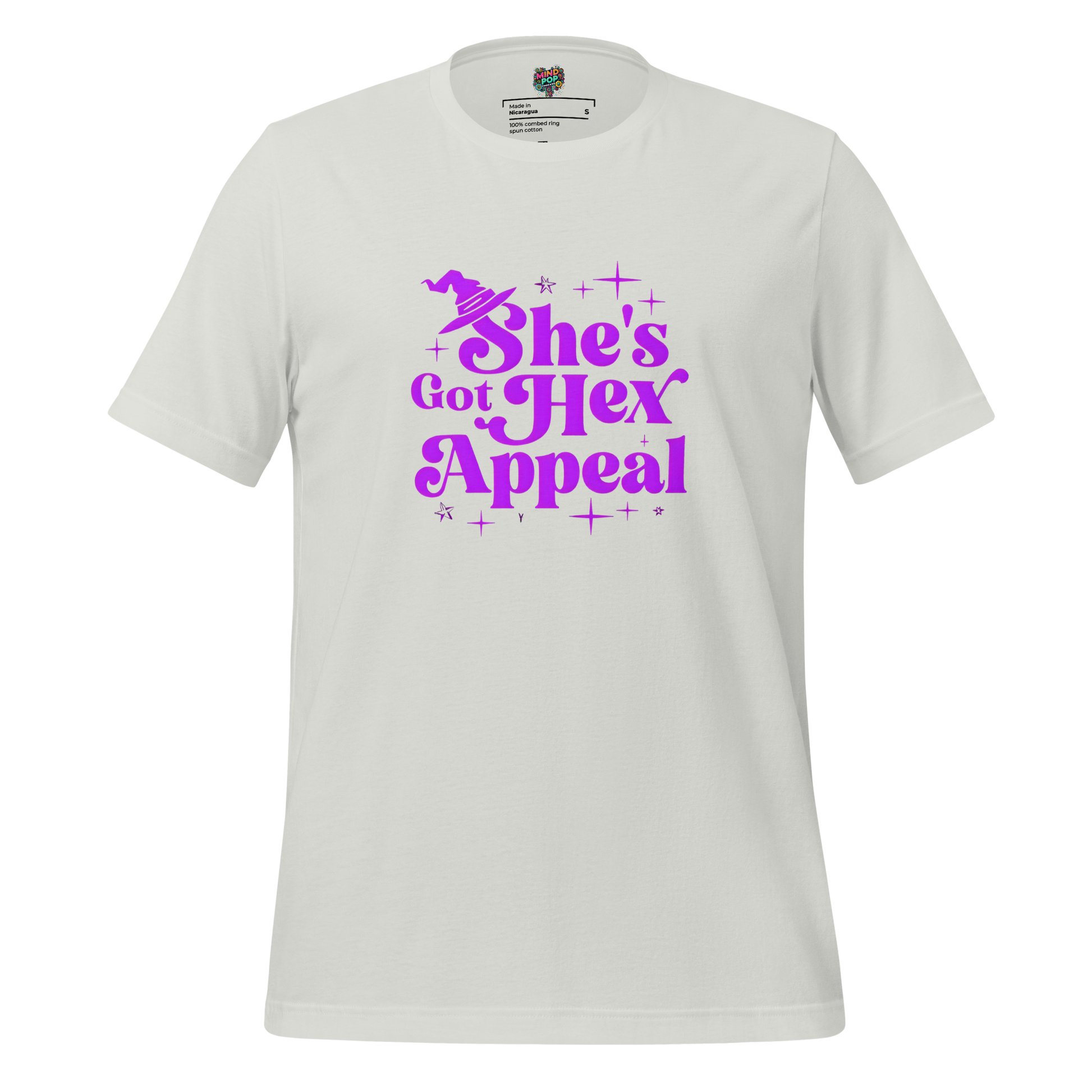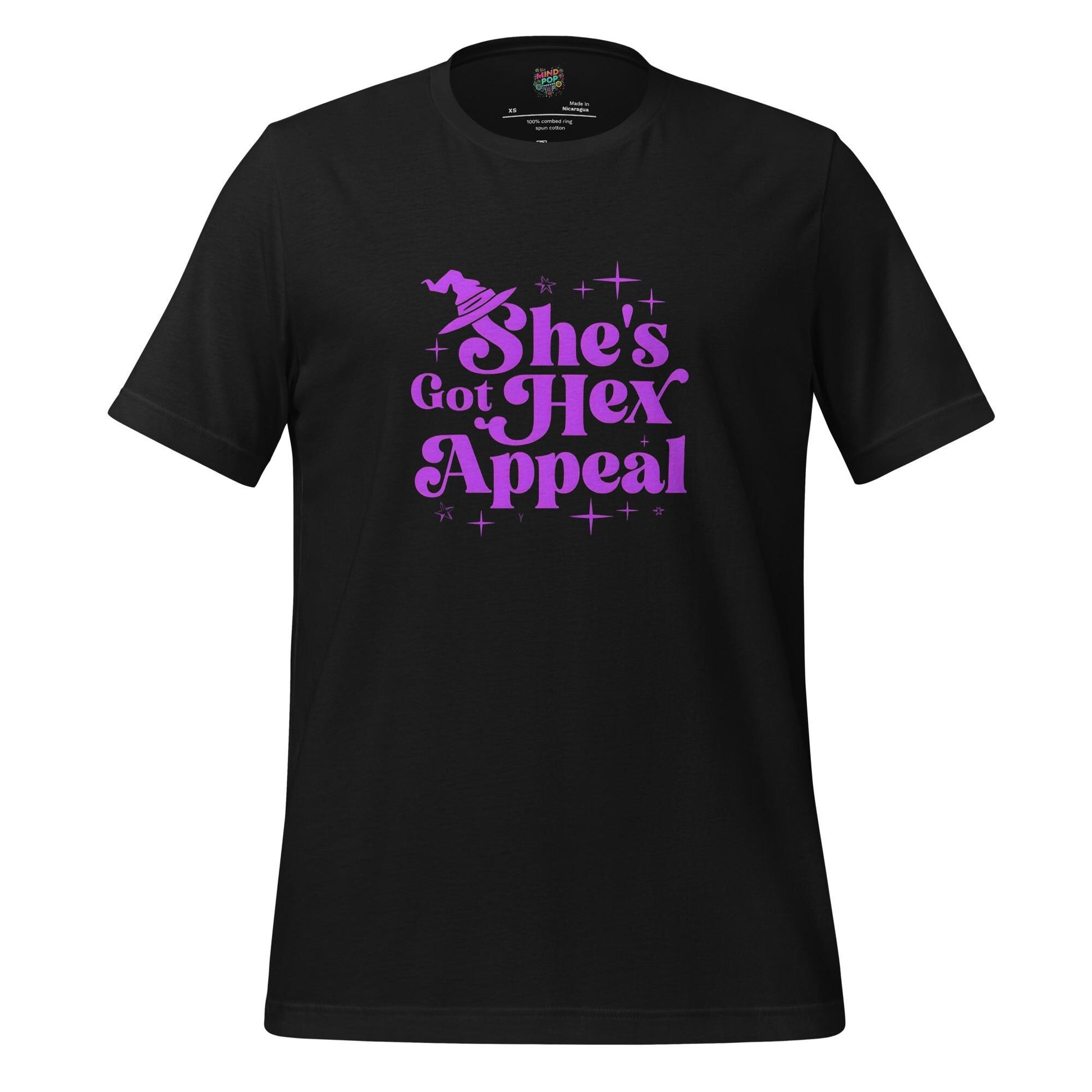 Bold “She Has Hex Appeal” text printed in high-quality DTG inks that won’t fade with time or spells. Clean crew neck, short sleeves, and a flattering classic fit perfect for layering under your favorite flannel or cape.